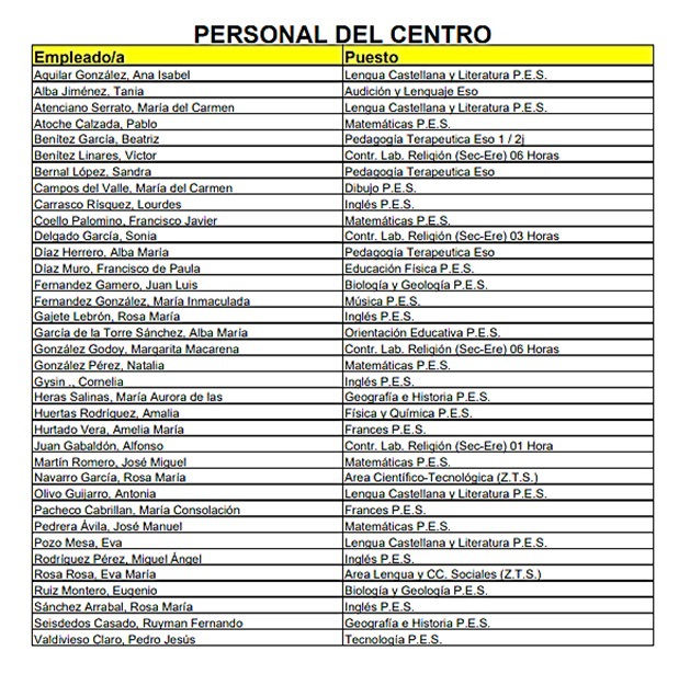 | EDUC. PLÁSTICA Y VISUAL | Elisabet Gutiérrez Pérez |